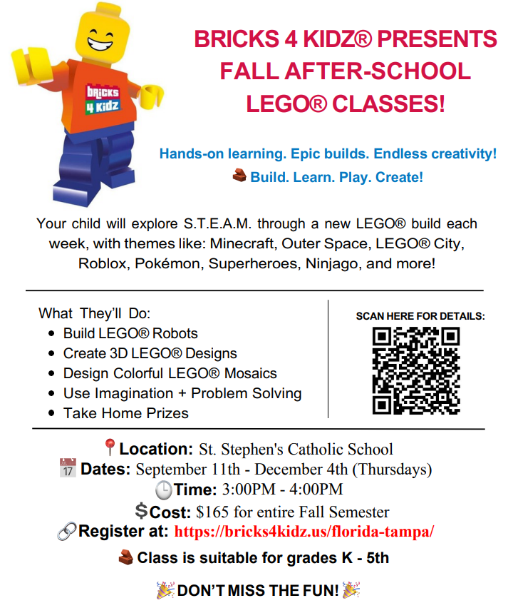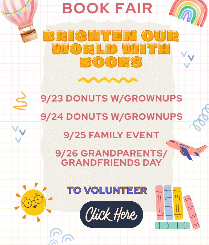Spirit Shirts are in and should be coming home today. Students will wear them on our next jean day (Sept. 26) which is also Grandparents/Grandfriends Day. What a great day for us to share our theme for the year. Speaking of Grandparents Day, be sure to save the date. This year we will begin in the FLC where Grandparents/ friends will enjoy presentations by each of the classes. There will be songs, poems, and fun for everyone. After the performances, students will return to their classes with Grandparents/friends for an activity and time to visit our book fair. A schedule of events will be provided that day.