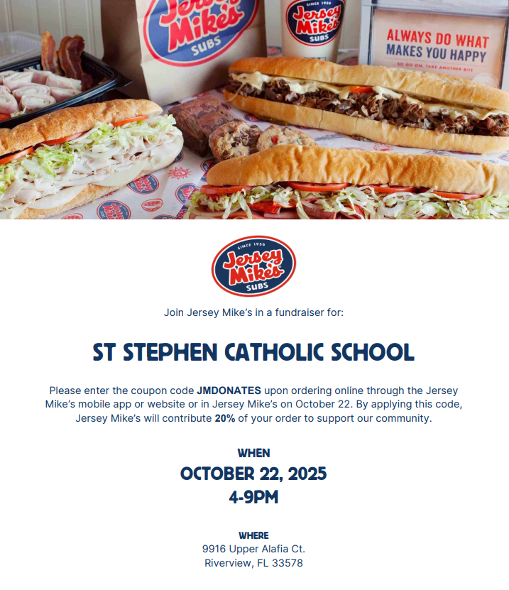 Please keep the faculty, staff, and parish employees in your prayers tomorrow as we participate in our annual parish retreat. This year we are spending the day at the Ringling Museum to reflect on how we encounter Christ through art and creation. Have a wonderful weekend.