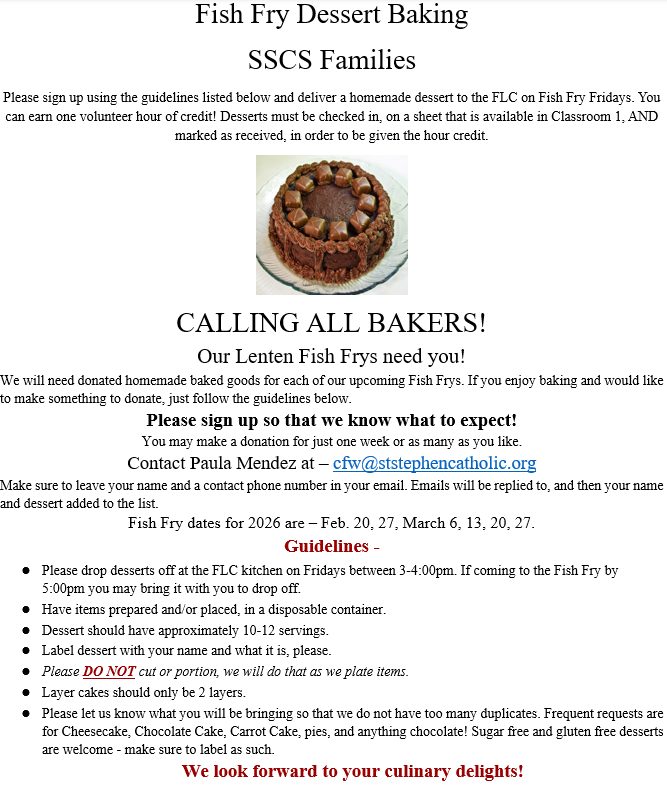 Good Afternoon St. Stephen Families.